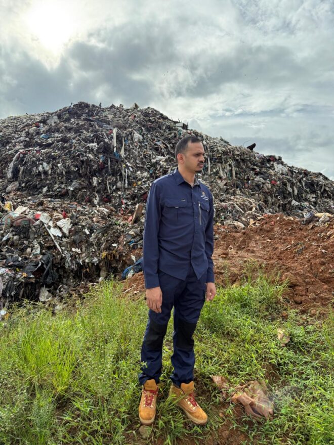 Image: Fiji’s permanent secretary for the Ministry of Environment and Climate Change Dr Sivendra Michael at a routine inspection at Naboro Landfill in Fiji earlier this year (Image: Supplied)